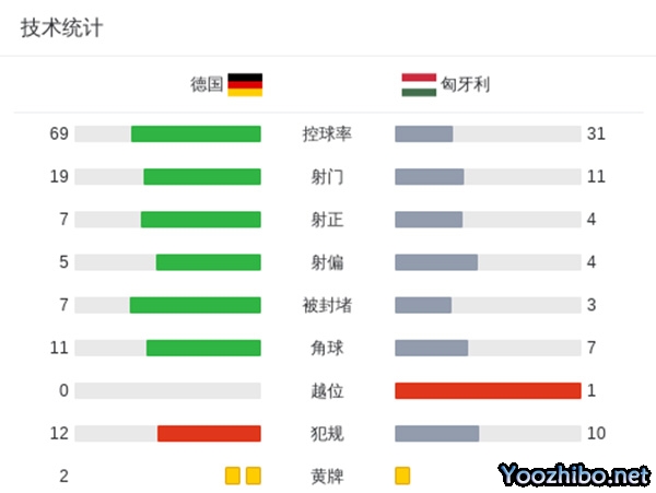 全场比赛结束,最终德国2-0匈牙利。