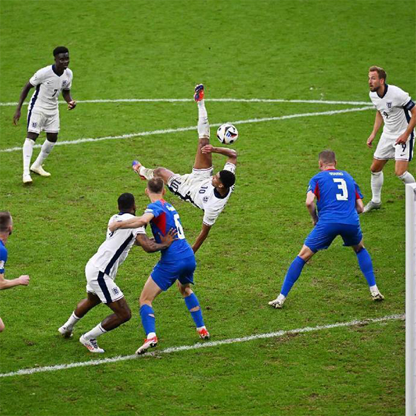 当时比赛进行到第95分钟,英格兰依然0-1落后,这时候,贝林厄姆挺身而出。他在禁区内打进精彩倒钩破门,为英格兰读秒绝平。在贝林厄姆助队拖入加时赛后,英格兰随后依靠凯恩的进球成功奇迹逆转。