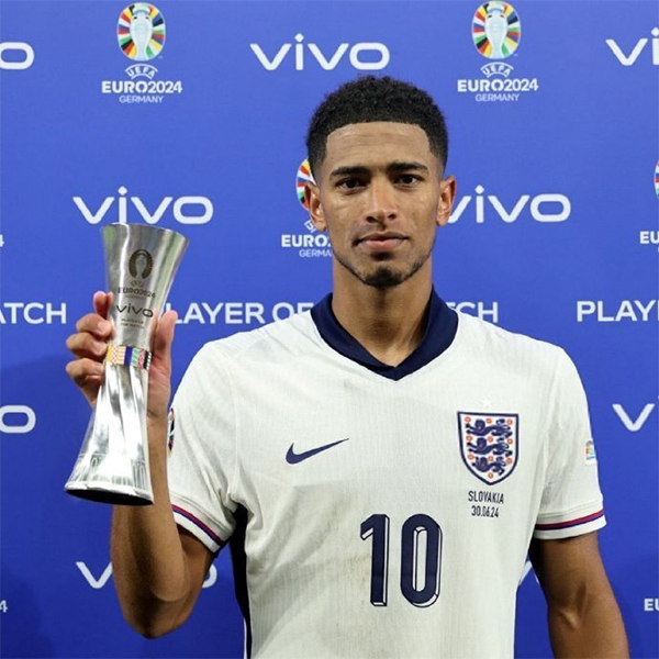24直播网讯 在北京时间7月1日凌晨结束的欧洲杯第4场1/4决赛中,夺冠大热门英格兰通过加时赛鏖战,艰难2-1逆转黑马斯洛伐克,涉险晋级8强。而本场比赛,为英格兰绝平的皇马帝星贝林厄姆,进球后做了一个颇具争议的庆祝动作。