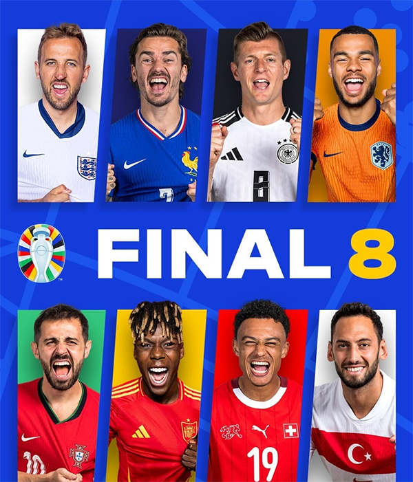 24直播网讯 北京时间7月3日凌晨,欧洲杯8强正式出炉。具体晋级的8支球队为瑞士、德国、英格兰、西班牙、法国、葡萄牙、荷兰和土耳其。