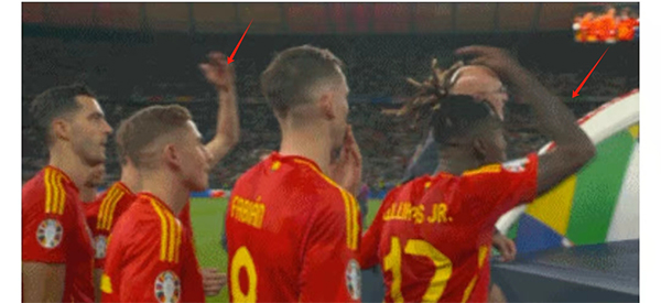 而在夺冠之后,因为年轻,17岁的亚马尔也是上演了非常搞笑的一幕,按照传统,在夺冠后,主教练是第一个走上领奖台的人,然后球员在排队上场走上领奖台接受领奖。可是因为这是人生第一个大奖,17岁的亚马尔按耐不住自己的兴奋,在队友排队等待主教练上场的时候,17岁的亚马尔是一溜烟的冲上领奖台,所幸的是队友及时喊回了小海哥,在知道自己闹了乌龙之后,往回跑的亚马尔也是不好意思的傻笑,而在经过主教练身边的时候,主教练也是宠溺的拍了拍小孩哥的头,回到球员中间的亚马尔更是被21岁的尼科也是开心的“嘲笑”着亚马尔没有见过世面,这对西班牙的左右边路组合的反应也是逗乐队友,要知道这两个人可是西班牙男足的未来,也将是让其他球队未来头疼不已的一堆组合。