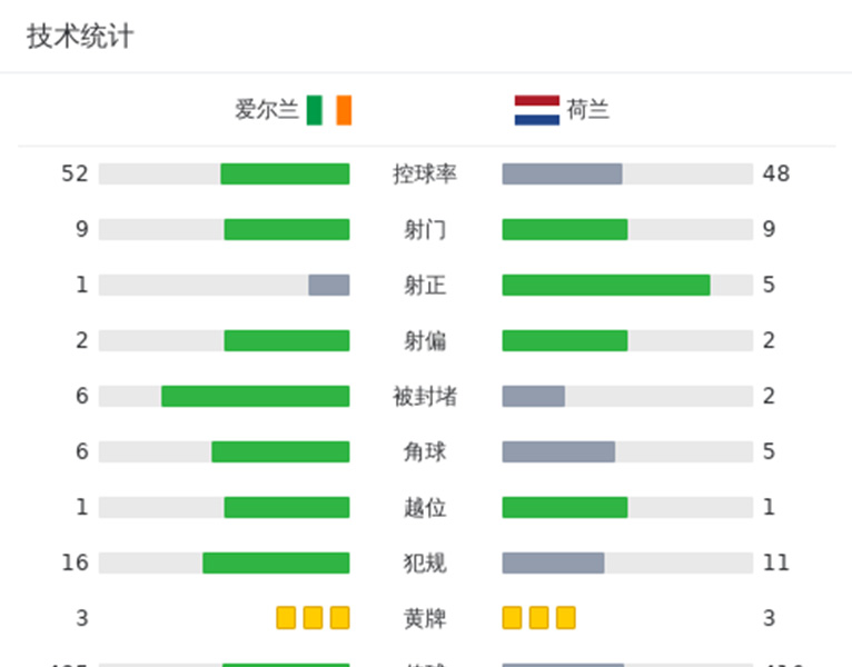 关键事件: 第4分钟,伊达克主罚点球骗过门将稳稳命中!爱尔兰1-0荷兰。
