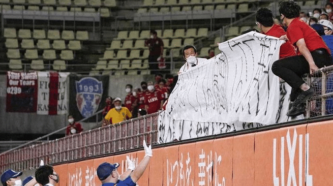 据悉因为安保人员介入,希望球迷们不要拉起这样的横幅,现场鹿岛鹿角的球迷们还和安保人员发生了冲突,可想而知球迷们看到球队如此糟糕的表现会有多么失望,所以也将情绪直接宣泄在安保人员的身上。