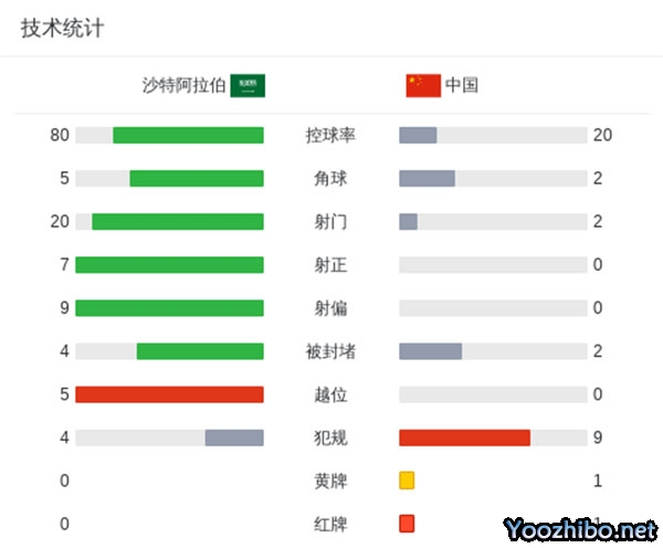 沙特出场阵容:1-纳瓦夫、12-阿卜杜勒哈米德、13-纳瓦夫-布沙勒、14-卡迪什(53’4-拉贾米)、6-纳赛尔-多萨里、7-朱瓦伊尔、16-加姆迪、17-坦巴蒂、9-布赖坎、10-萨利姆-多萨里、15-叶海亚