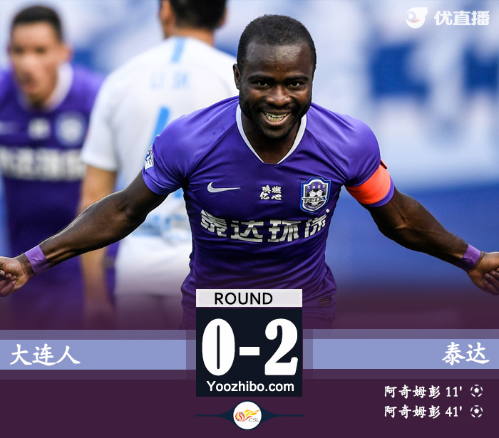 第37分钟,苏缘杰犯规吃到黄牌。第41分钟,泰达扩大比分,郑凯木后场发动长传球,阿奇姆彭高速插上得球突破至禁区左侧,左脚小角度攻门。皮球直入球网!泰达2-0领先大连人。半场战罢天津泰达暂时2-0领先大连人。