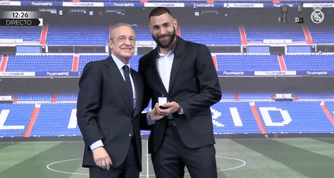 随后是本泽马现场演讲,感谢了老佛爷弗洛伦蒂诺:“我永远都不会忘记皇家马德里。”