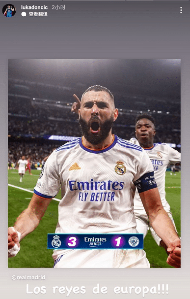东契奇对于本泽马一直都很支持,这次场合是在本泽马的告别仪式,去年本泽马表现极其出色,率队拿下欧冠冠军,当时东契奇就晒出本泽马庆祝照并且配文:“欧洲之王!!”