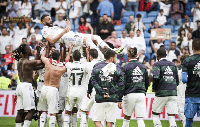 24直播网讯06月05日西甲联赛第38轮,本泽马完美告别皇马,在本轮比赛打进1球,帮助皇马1-1踢平毕尔巴鄂竞技,完成本赛季的收官,以78分获得西甲第二名,第一名的巴萨88分,第三名的马竞77分。本轮比赛,皇马主帅安切洛蒂亮出强阵,小熊、本泽马、罗德里戈、塞瓦略斯、克罗斯、卡马文加、吕迪格、纳乔、米利唐、卡瓦哈尔、库尔图瓦11人首发,呈433阵型,莫德里奇、阿森西奥、楚阿梅尼、巴斯克斯替补登场。
