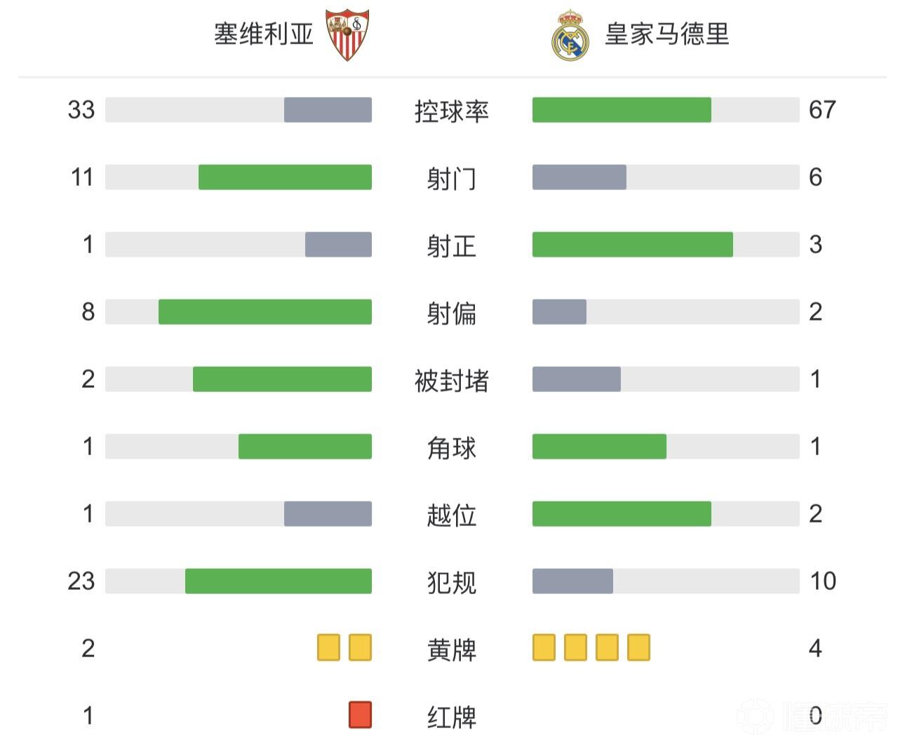 关键事件: 第2分钟,希尔禁区左侧打门被米利唐封堵,随后拉法-米尔顺势再抽射得手,塞维利亚1-0皇马!