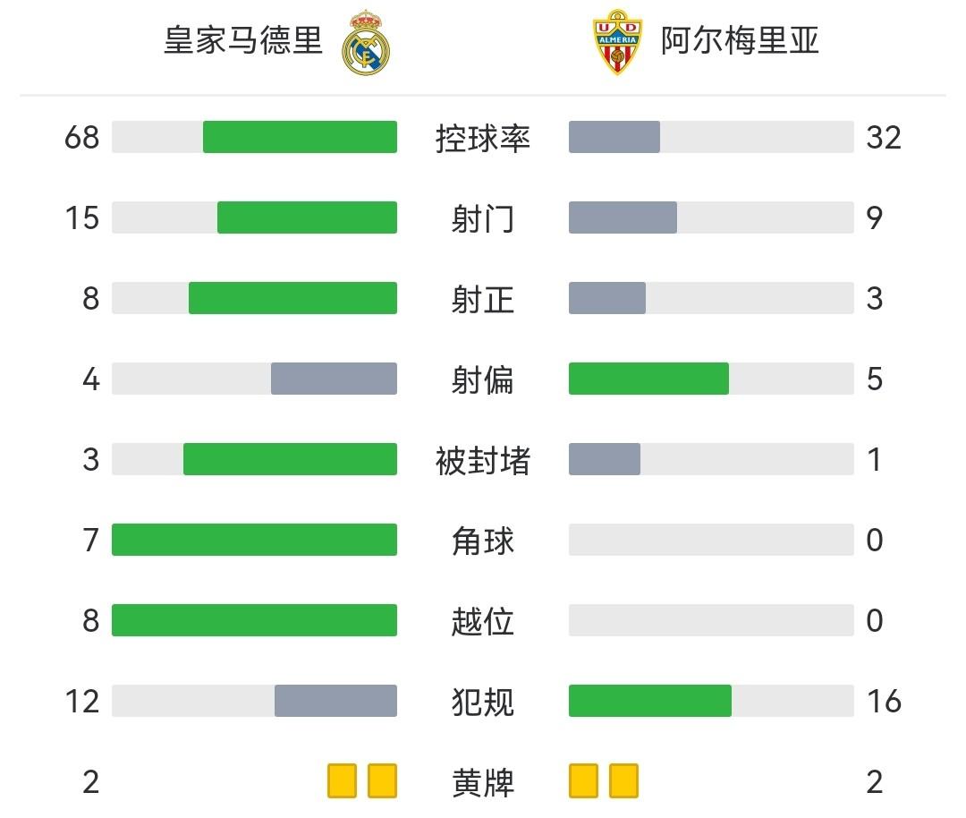 第61分钟,阿尔梅里亚再下一城!克罗斯后场失误波尔蒂略右路传到禁区罗伯托内头球破门,皇马4-2阿尔梅里亚。