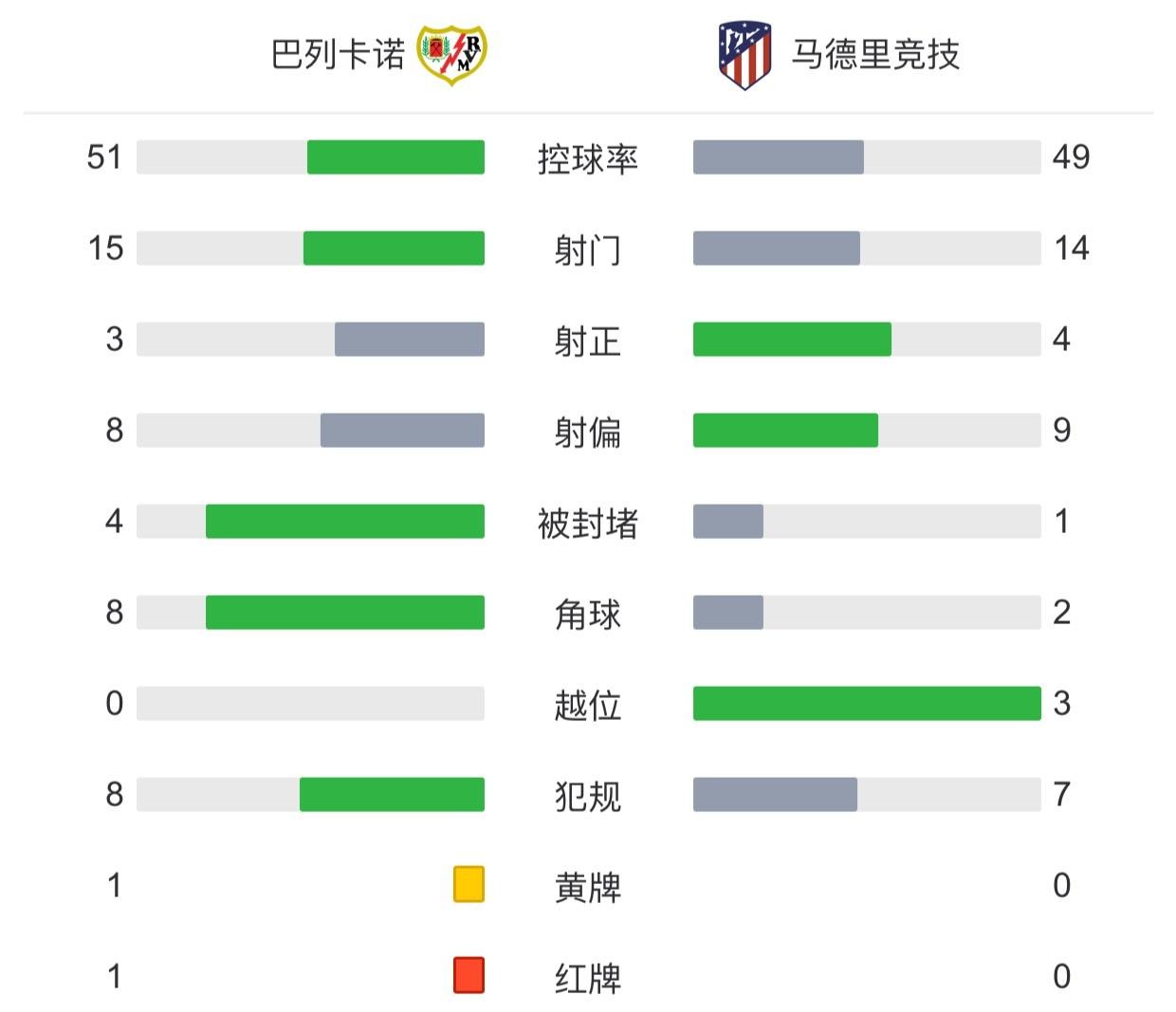 最终马竞客场2-1击败巴列卡诺,取得联赛5连胜,继续排名积分榜第三位。