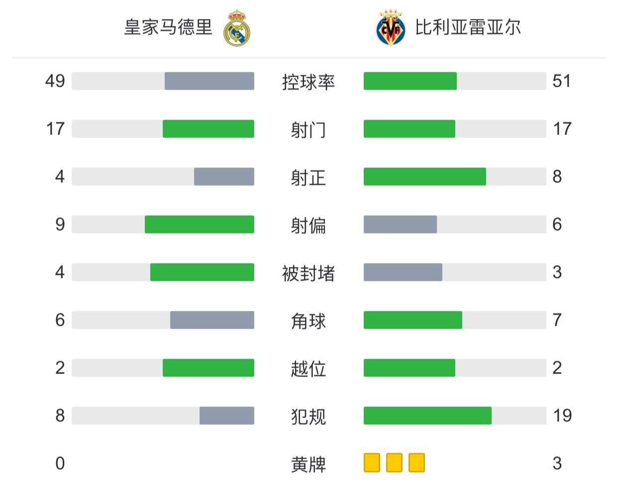第48分钟,塞巴略斯左路横传,维尼修斯晃过比利亚雷亚尔多名后卫推射破门,皇马2-1比利亚雷亚尔。