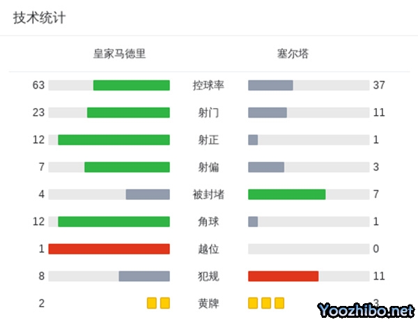 24直播网讯 北京时间3月11日西甲 联赛 第28轮,皇家马德里主场对阵塞尔塔。上半场,卡马文加头球攻门被门将扑出,吕迪格头球攻门被挡出,维尼修斯补射破门。下半场,吕迪格与维尼修斯连续造成对方乌龙,居莱尔补时阶段破门迎来皇马生涯首球,最终,皇马4-0塞尔塔。