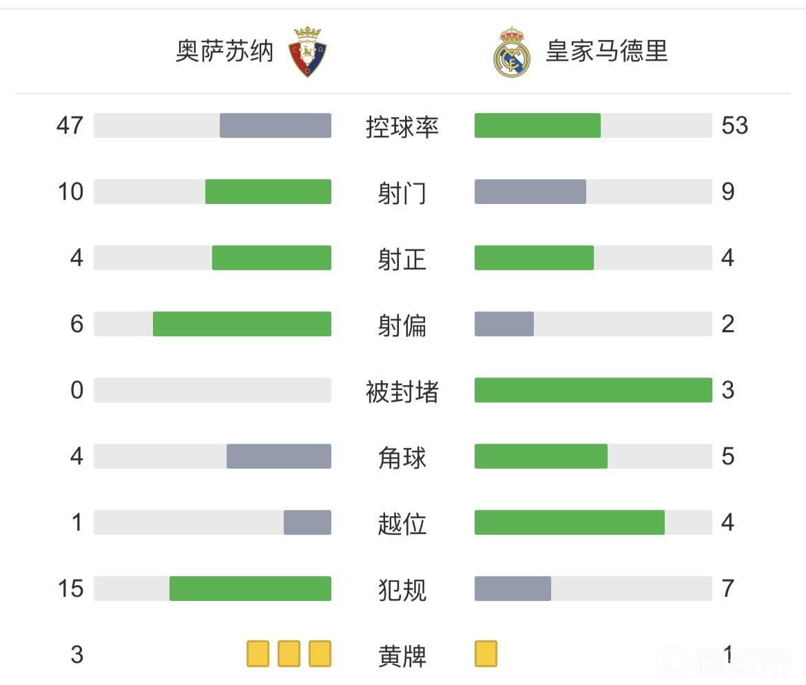 最终皇马客场2-0击败奥萨苏纳,取得联赛两连胜。