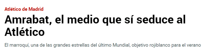 《马卡报》表示,马竞将阿姆拉巴特视作引援目标,西蒙尼认为他和马竞的风格很契合。