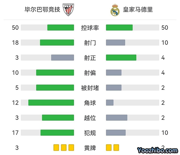 全场比赛结束,最终皇马2-0击败毕尔巴鄂竞技。