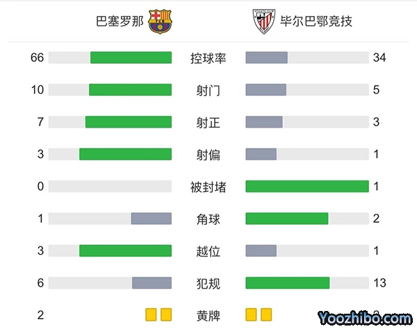全场结束,巴塞罗那主场4-0大胜毕尔巴鄂。