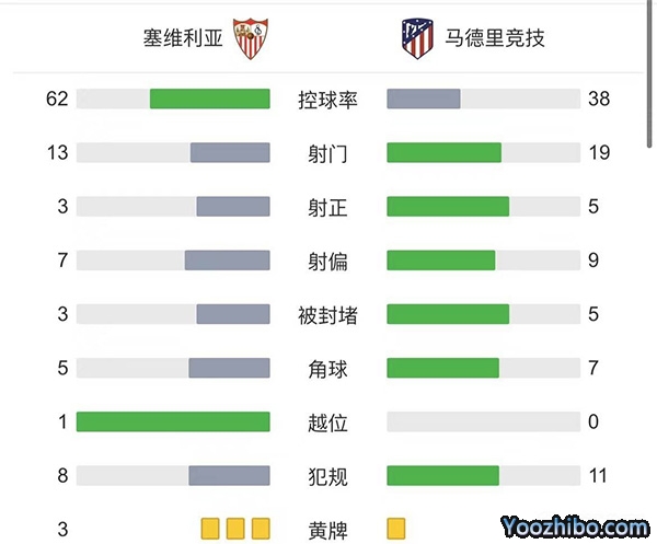 全场比赛结束,马德里竞技2-0塞维利亚。