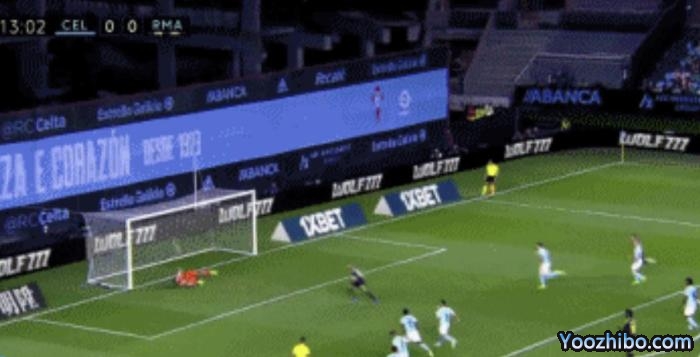 24直播网08月21日讯 皇马vs塞尔塔第14分钟,阿拉巴造点,本泽马操刀主罚将球打进!