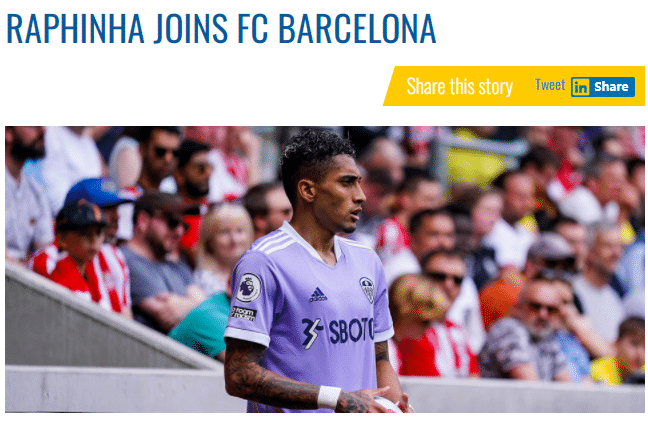 24直播网07月16日讯2020年10月转会窗截止日,拉菲尼亚加盟利兹联,在客场击败埃弗顿的比赛中打进了加盟利兹联后的首球。他共为利兹出场67次打进17球。