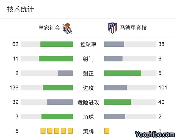 第93分钟,皇家社会扳回一球!贾努扎伊主罚弧顶定位球打门太正被奥布拉克扑出第二点古里迪头球补射破门。马竞客场2-1皇家社会。