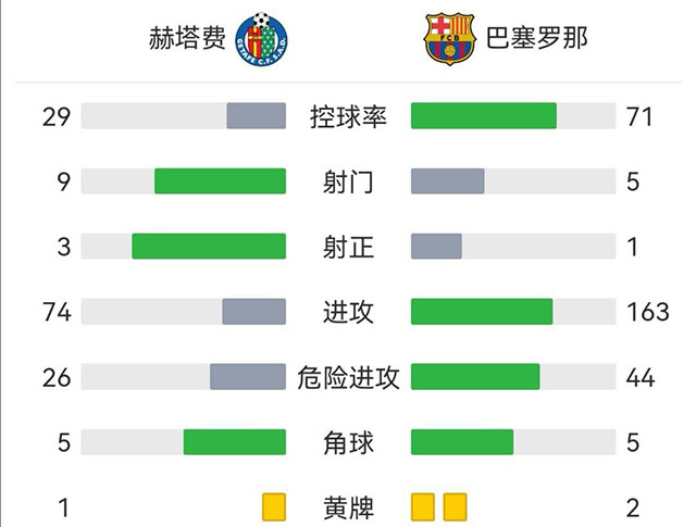 全场比赛结束,巴塞罗那0-0赫塔费。