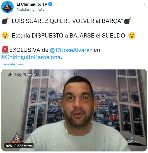 24直播网05月06日讯 据西班牙六台节目ElChiringuito记者JoseAlvarez报道,苏亚雷斯想重回巴萨,并愿意降薪加盟。
