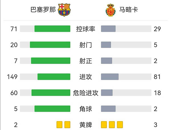全场比赛结束,最终巴萨2-1马洛卡。