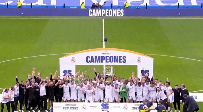24直播网05月01日讯 ,西甲第34轮结束了一场焦点战,皇马主场4-0击败西班牙人队,提前加冕本赛季西甲冠军,队史第35座西甲冠军。皇马踢了34轮比赛,战绩是25胜6平3负,积81分,领先第二名塞维利亚和巴塞罗那,提前4轮加冕本赛季西甲联赛冠军。安切洛蒂成为第一位获得五大联赛冠军的主帅,这是一项伟大的纪录。皇马成功夺冠,接下来的目标要瞄准欧冠半决赛次回合对阵曼城的比赛了。