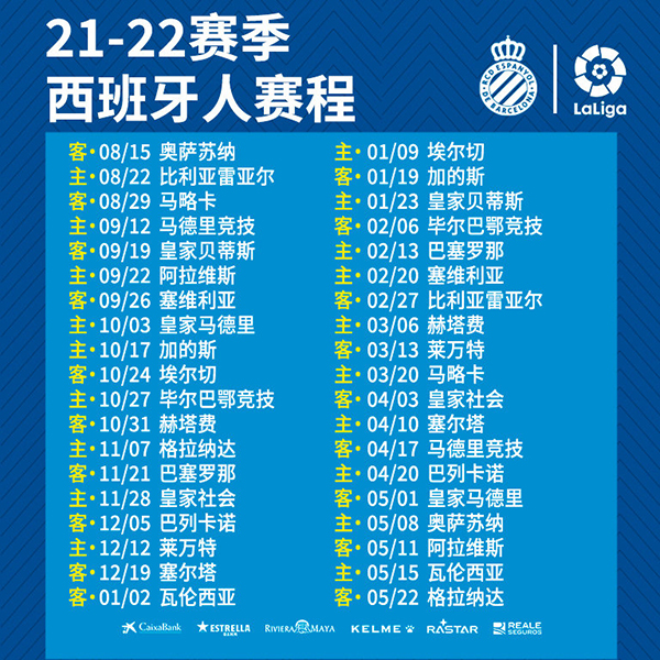 2021-2022赛季西班牙人赛程表