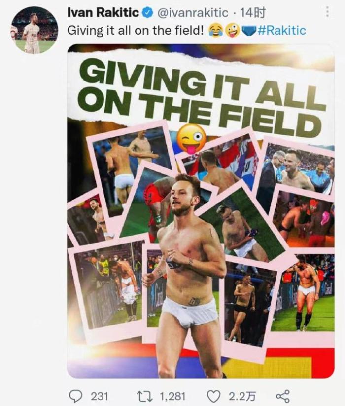 今天,拉基蒂奇在自己的社交媒体上晒出了自己比赛后的“内裤照合集”,并配文道:“比赛中全力以赴!”