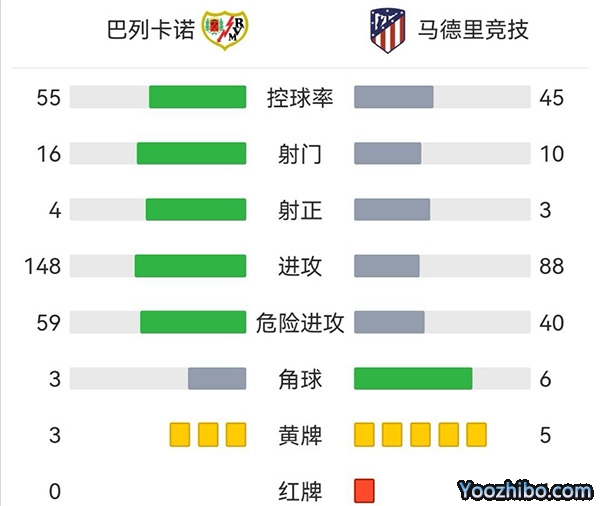 全场比赛结束,巴列卡诺0-1马德里竞技。