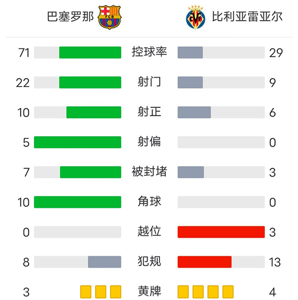第71分钟,巴萨反超比分!左路京多安定位球开到禁区门前拜利自摆乌龙,巴萨3-2比利亚雷亚尔。