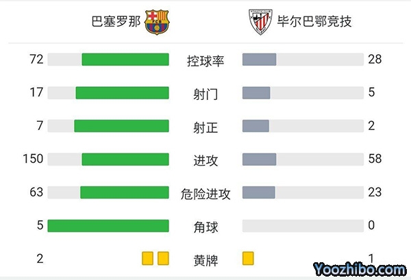 全场比赛结束,巴萨4-0战胜毕巴。