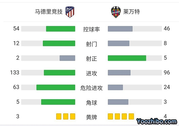 全场比赛结束,马竞主场0-1不敌莱万特。