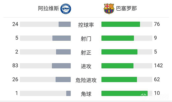 全场比赛结束,巴萨1-0战胜阿拉维斯。