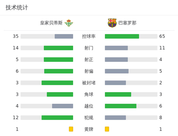 全场比赛结束,最终巴萨4-2贝蒂斯。