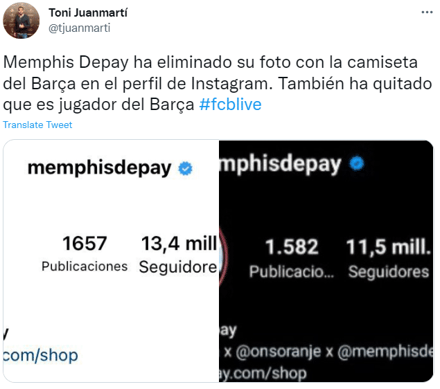 而胡安马蒂表示,德佩今天将自己Instagram简介中关于巴萨的内容全部删除,并换掉了此前自己身穿巴萨球衣的头像,这些举动引发了人们猜测。