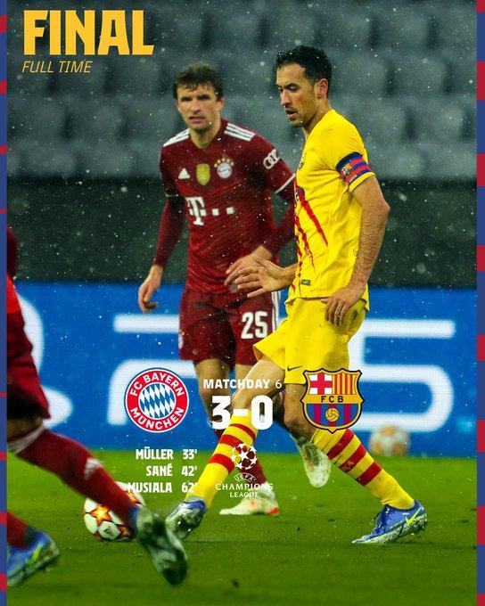 24直播网12月09日讯 今天凌晨,巴萨在欧冠末轮客场0-3完败拜仁,排名小组第三,无缘欧冠淘汰赛。