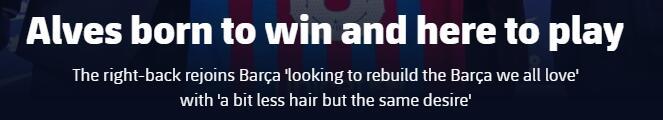 24直播网11月19日讯 ,巴西老将阿尔维斯接受巴萨官网的采访,他表示自己回到巴萨不是为了养老。