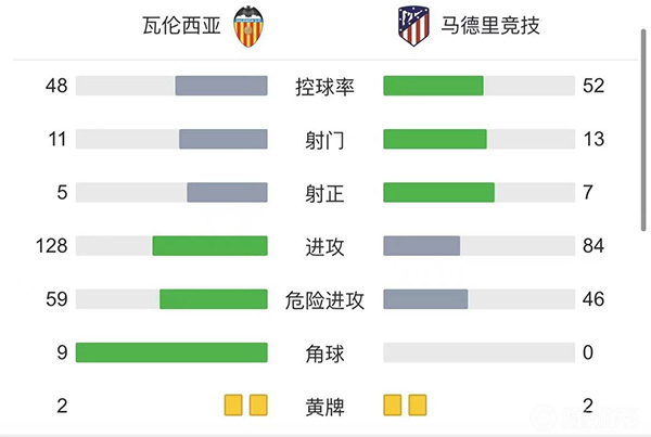 全场比赛结束,马德里竞技3-3瓦伦西亚。