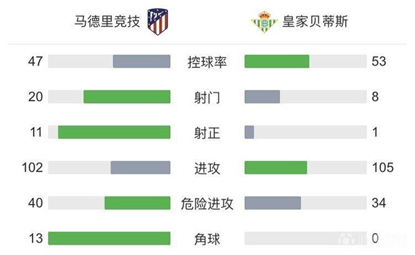 全场比赛结束,马德里竞技3-0贝蒂斯。