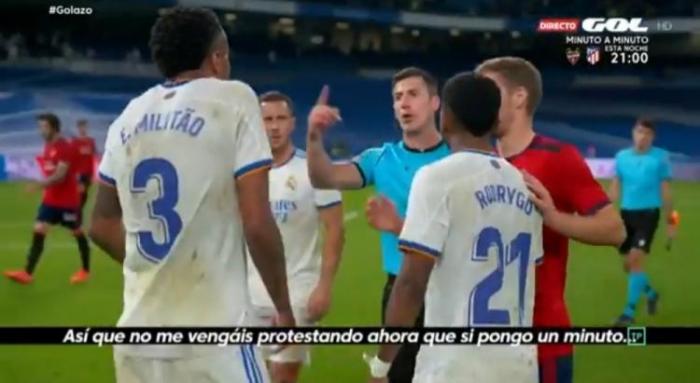 24直播网10月29日讯 据报道,皇马在0-0被奥萨苏纳逼平后向裁判抱怨只有4分钟补时时间,却不料遭到裁判嘲讽。