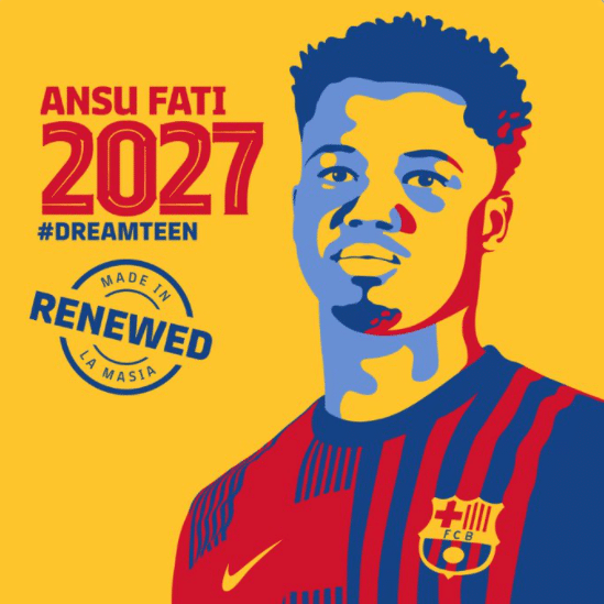 18岁的法蒂此前的合同将在2022年6月到期,现在俱乐部已经与他完成续约。
