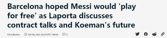 24直播网讯 10月8日消息,巴塞罗那主席拉波尔塔表示,他们曾希望梅西免费为巴萨踢球。