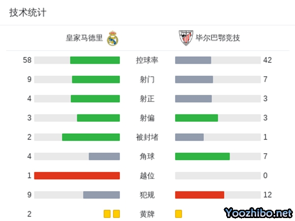 全场比赛结束,皇马2-0轻取毕尔巴鄂竞技。