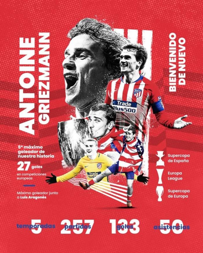 随后,马竞官方高兴得晒出了格子的海报,庆祝格列兹曼的回归。