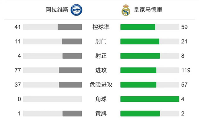 全场比赛结束,最终皇马4-1击败阿拉维斯取得新赛季开门红。