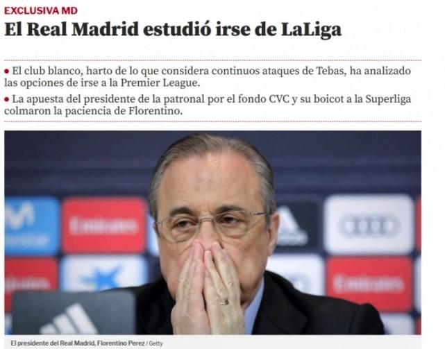 也正是因为与西甲联盟方面有冲突的背景下,皇马开始探索如何从西甲联赛退出,并加入另一个欧洲联赛的可能性。尽管弗洛伦蒂诺也把意甲和德甲当作选项,但皇马主席和他的合作者最钟意的,还是英超联赛。毕竟,英超是毫无争议的当世商业运作最为成功的联赛。皇马若能加入将可以获得巨大的国际转播,以及从电视转播权中获得的巨大经济利益,这对于皇马近来不佳的财政状况也是很好的改善。