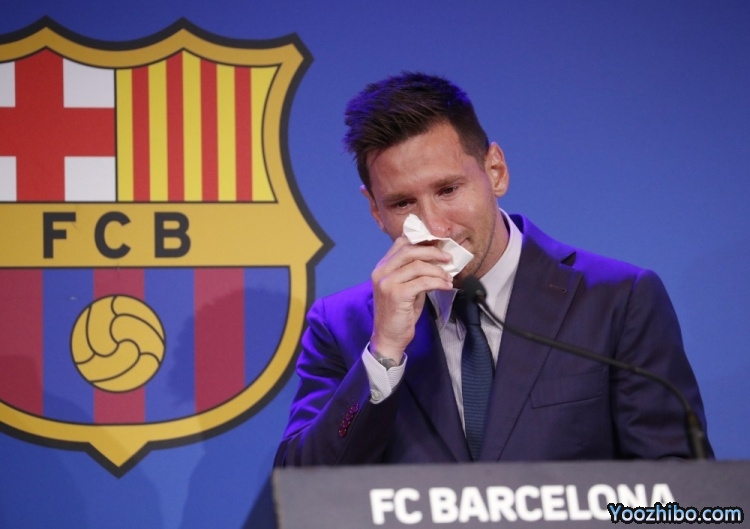 步入会场后还未开始发言,难以抑制情绪的梅西已经哽咽落泪。